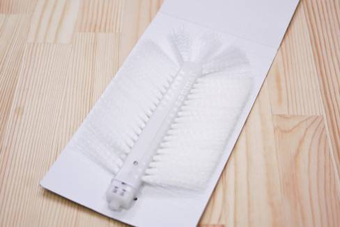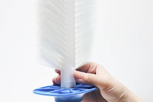 悉心保護的排刷,材質為軟性尼龍毛,不傷害瓶身。一般建議3~6個月即可替換,以免細菌孳生愈洗愈髒,不過平常就要記得用完要甩乾水分,不然一個不注意就會發霉了。