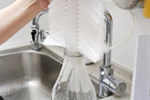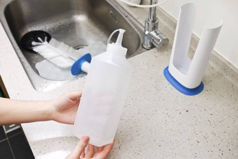 擠一點清潔劑後,就可以將刷子塞進瓶子了