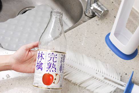 大家對這個瓶子應該不算陌生,標榜來自日本的蘋果汁,在 N 年前喝完過後,因為手上所有刷子都伸不進去,最後只能用熱水沖沖就當作洗過了,現在拿來裝米。