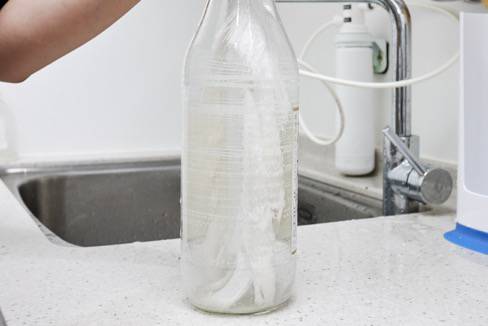 接下來是水瓶,其實這個本來是園藝用的,並沒有內部清潔的必要性,但是編輯家裡已經沒有長條狀的瓶子了,只好拿它來頂著先XD