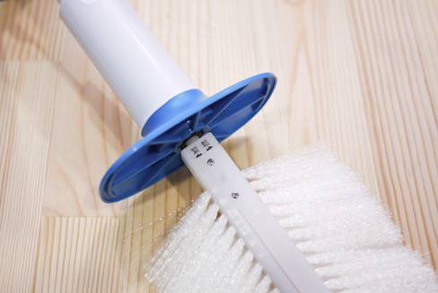 中間按鈕用來調整刷毛長度,從 16~30cm 的瓶子都能使用。