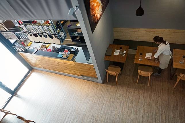 由於開放式廚房還有櫃台均設置在一樓,所以一樓只有靠窗的吧台座位,主要的用餐空間則是在二樓,除了一般的餐桌外,也有舒適的沙發跟多人專用的包廂,提供各種需求的客人合適的用餐環境。