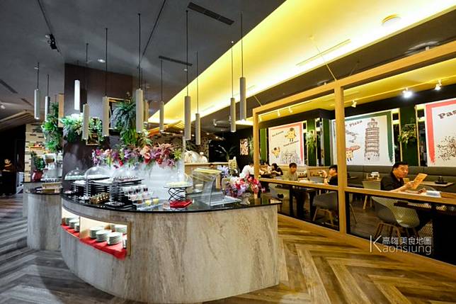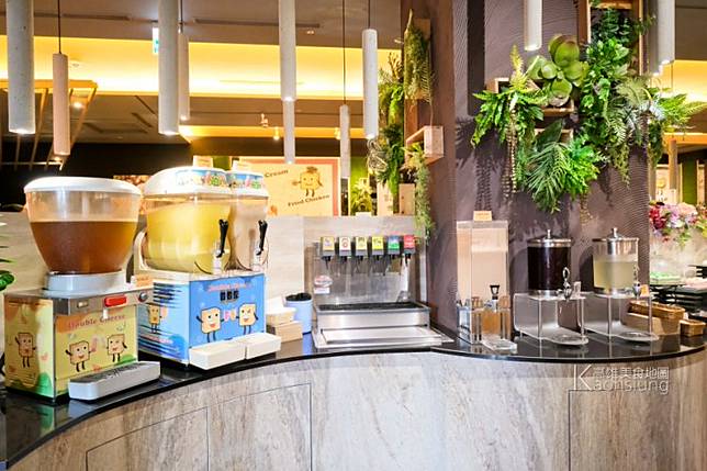 波浪型中島四面環海?的設計,取餐動線方便。比較特別的是,屏東店的自助吧有多了甜點區,多了一些小巧的蛋糕、霜淇淋,還有酥皮濃湯等。