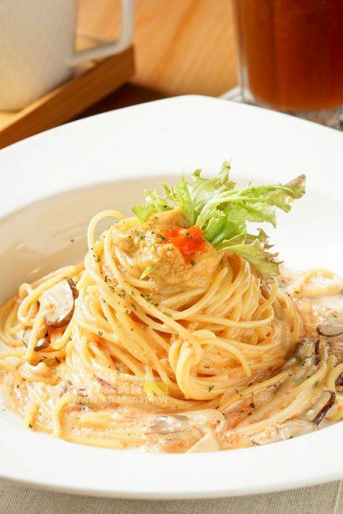 而接下來這道義大利麵則用上了非常高級的食材,使用整顆新鮮海膽並佐以明太子,如此豪華的組合在定價上卻高貴不貴,鹹香明太子搭配滑順奶油醬汁,完美融合了日式風味及義式風味。