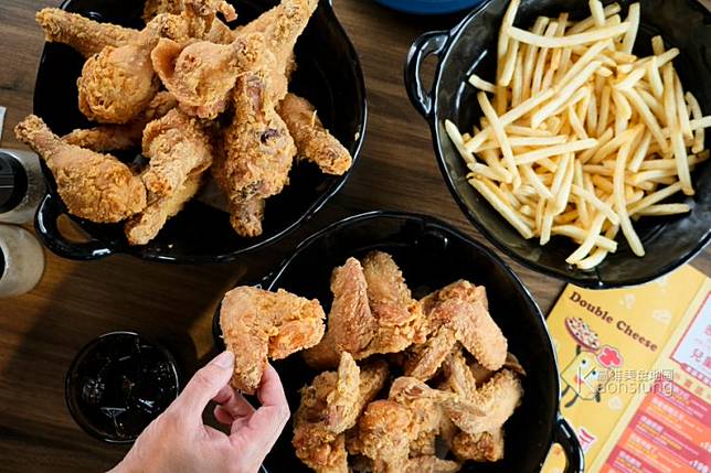 Pizza趴中場休息時間,可以來點炸物擋一下。黃金炸雞跟現炸脆薯都是快(罪)樂(惡)的來源,炸雞還有雞腿跟雞翅兩種可選。