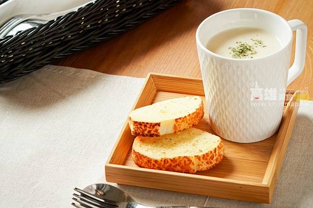 義大利麵、燉飯等主餐均有附餐包以及濃湯,就算是附餐也不含糊,使用越嚼越香的帕瑪森起士餐包,濃湯也沒有粉味,並且加了許多玉米粒,真材實料。
