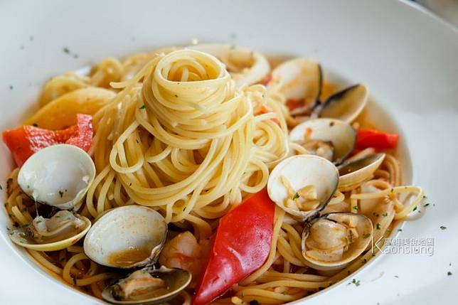 義大利麵有3種口味,我們選了茄汁海鮮,蛤蠣、小卷的料不少,口味輕盈但也滿夠味的。