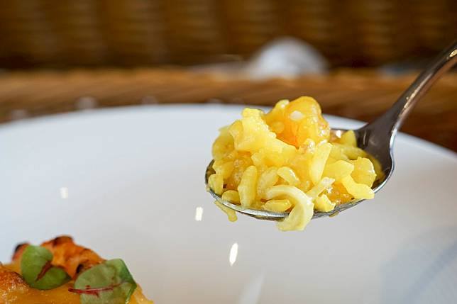 有別於一般的燉飯,店家考量到來店客群中也有許多的年長者,因此就沒有採用米芯較硬的義大利米,店長特別選用自己家鄉台東出產的關山米,米粒香甜飽滿而且水份較高,從這裡就可以看到店家的對中高年齡客群的照顧呢!