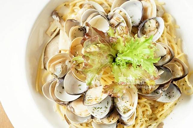 如果比起濃郁醬汁更喜好清淡口味的朋友,不彷試試這道使用白酒清炒的蒜味白酒蛤蠣義大利麵,就像是百花盛開般層層堆疊的蛤蠣,幾乎粒粒飽滿,在食材上看得出都有特別挑選過。