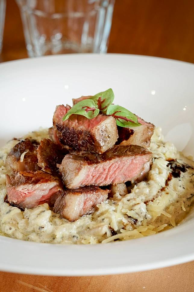 濃稠牽絲的「牛小排菇菇起司燉飯」完美呈現義式米粒口感!鴨胸清炒義大利麵可替換成濃郁燉飯,讓人多了不少選擇~ Dor,留 手工義大利麵(看地圖)