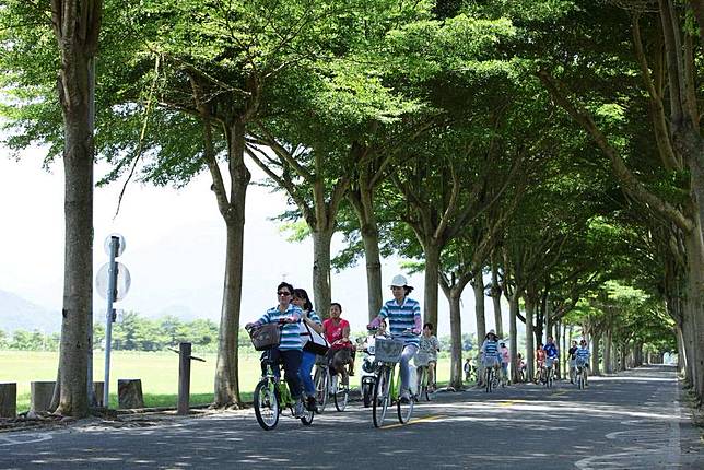 被樹蔭包圍的龍田自行車道也有「綠色隧道」的美名,除了兩旁悠閒的農田、茶園,如果有請在地嚮導領騎,還可以得知林蔭大道下「千人躺」的獨家地點,完美融入鹿野當地的閒情逸致。