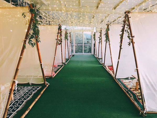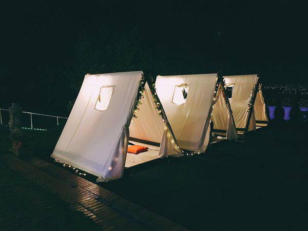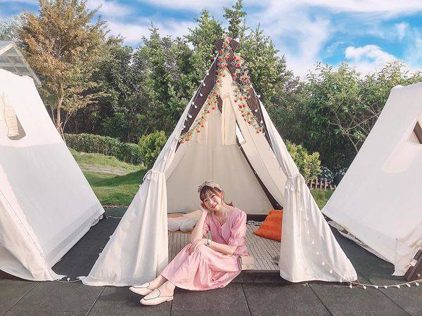 帳篷擺設不管是在裡面喝咖啡,或是直接躺下觀星看夜景,都相當浪漫。滿滿的野餐感,搭配上白色系浪漫帳篷,不管白天黑夜都是相當好拍,人氣滿滿啊!
