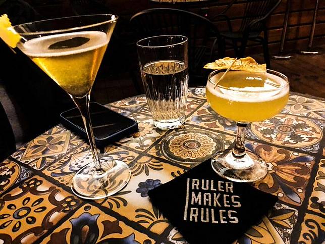 原本以白色基底搭配上一點簡單的黑色裝潢以及木質家具走低調極簡風格的「Ruler Bar」,於2021年初店面整修大改版,在原本的簡單中多加入了沉穩低調的色彩與質感,店內位置雖然不多但有木陽台的戶外庭院區也很適合拍照!以琴酒搭配台中特產麻薏的氣泡調酒「麻薏茶」裡還加入了台灣人最愛的抹茶,酒單上並沒有寫上這款酒,算是招牌隱藏菜單記得特別跟調酒師點。「Ruler Bar」提供調酒外帶還裝在特製的紙袋裡,喝不夠可以外帶回家繼續醉!
