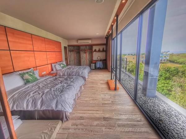 自然也位處在小琉球的最高處,因此視野極好,無論是眺望海景或是島上風光,都能完整的映入眼簾。進到民宿會發現採光很好,因為大廳的門窗都採用大片落地窗,讓自然光自然的照亮大廳,貫穿名字自然也,房內規劃就如同自己的家,生活用品隨手可得,讓你在這住的自然又自在。
