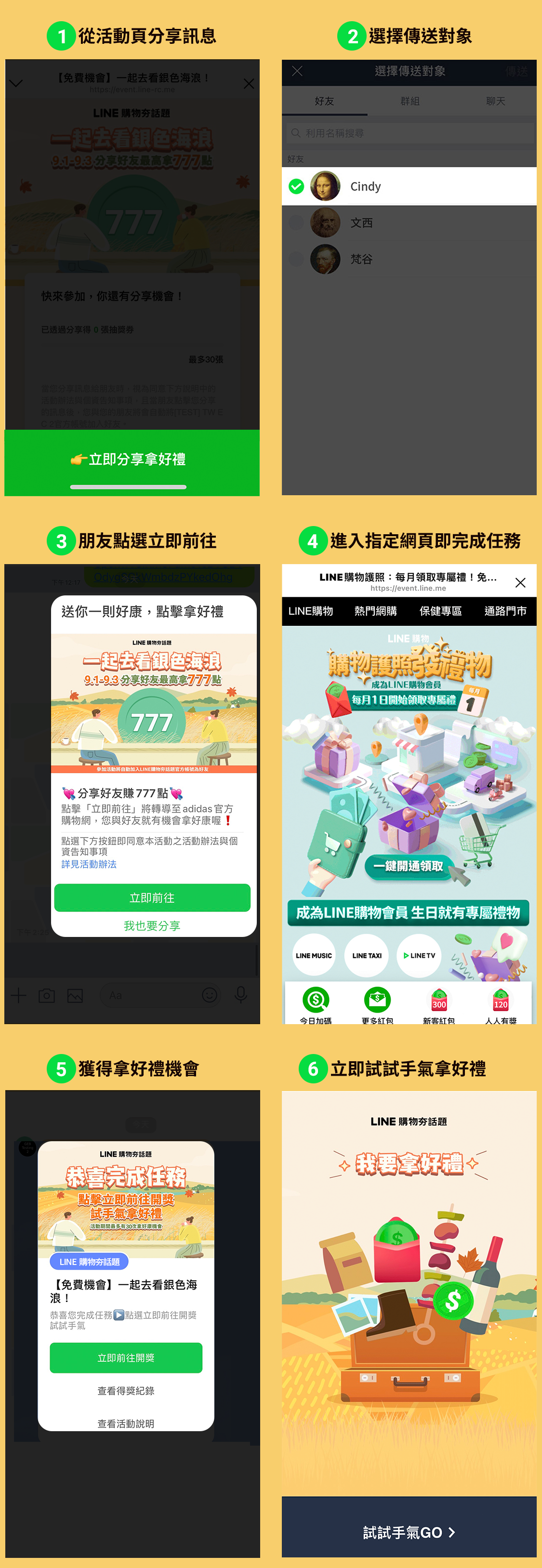 5. 分享給同1名好友,最高可獲得1次好禮,若要再獲得好禮請分享給其他好友。