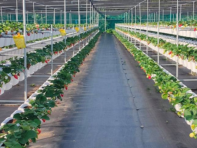 一般採草莓免不了的都要彎腰或蹲下尋找紅色草莓的蹤影,雖然也頗有一番樂趣,但是彎久了總會腰痠,但位於新竹關西的長鑫莓果農園卻是採取高架草莓,讓你不用沾到泥土也可以採到草莓,而且園內有14品種不同品種的草莓可供摘採,另外現場也有在販賣高架草莓盆栽,老闆娘會細心的教導該如何照顧它,讓你回到家裡也可以自己種草莓。