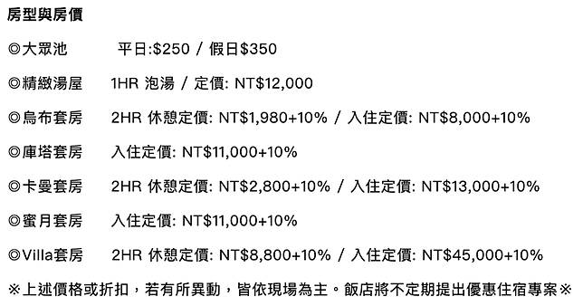 不同風格的套房,準備了所有必需品,房間和浴室整體空間也相當足夠,裝潢大方舒適,房內SPA溫泉浴缸很大而且有冷熱兩池,泉質好,泡起來很舒服,不但能使肌膚細嫩,也能消除疲憊。