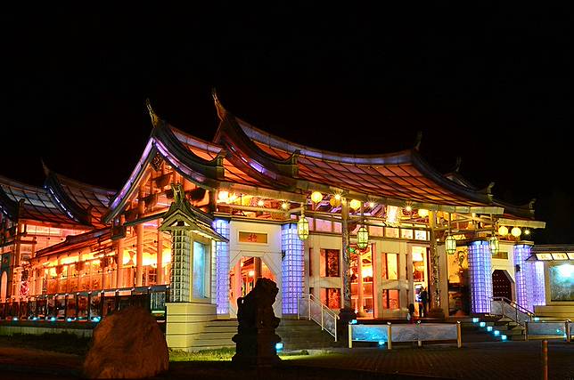 隨著天色漸漸變暗,來看看同樣令鹿港驕傲不已的華麗宮廟,整體建築別於一般木造公廟,以玻璃打造的透明建築配合五顏六色燈光的轉換搭配,是個鹿港夜晚不可錯過景點!