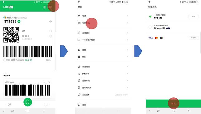 步驟4:選擇付款方式,即可開始使用LINE Pay!
