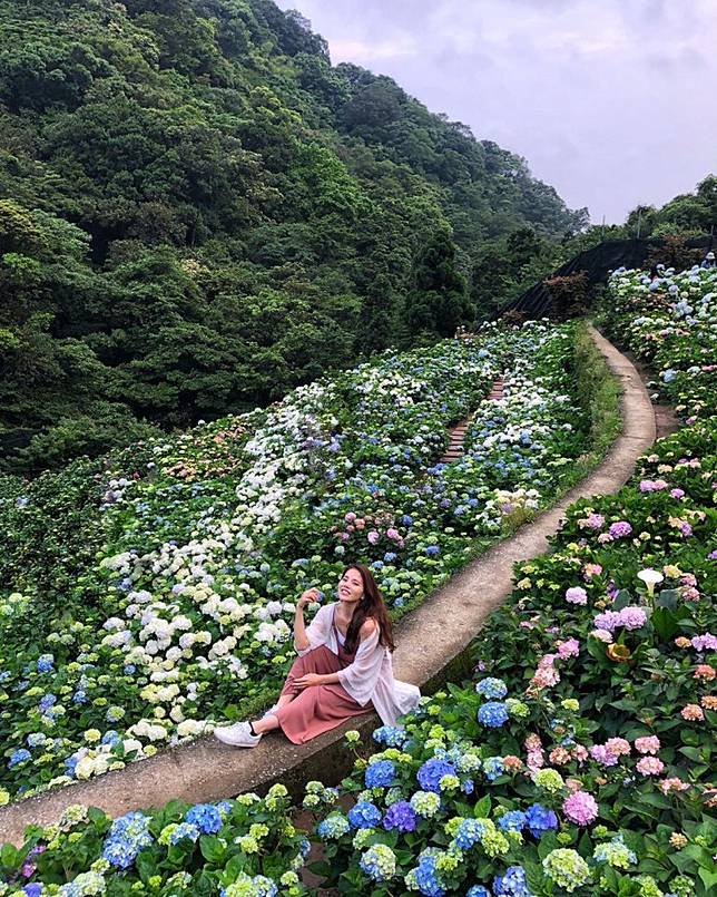 台灣一年四季都有許多花可以欣賞,而到了五月,就是繡球花的主場!一大叢一大叢的繡球花,搭配五顏六色的花色,不管穿著什麼顏色的衣服都能找到最配的花色,繡球花也成為拍照的首選,尤其是站在一整片的繡球花海旁,不用擺出太多的姿勢就美得像一幅畫!