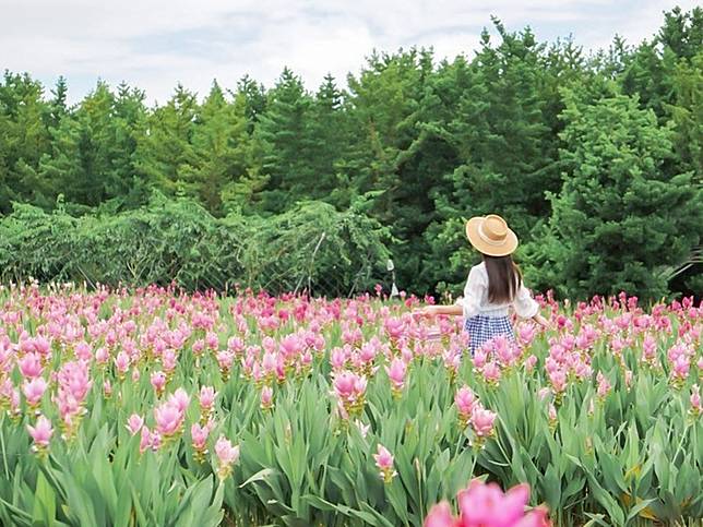 花海控們快收藏!彰化溪州這處薑荷花田(看地圖)正在盛開中,一大片飄散著淡淡花香的粉色薑荷花已成為今夏最美麗的風光!