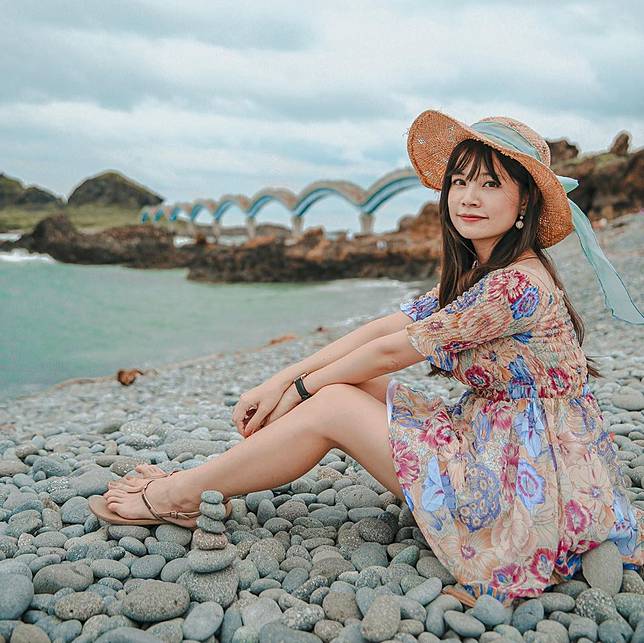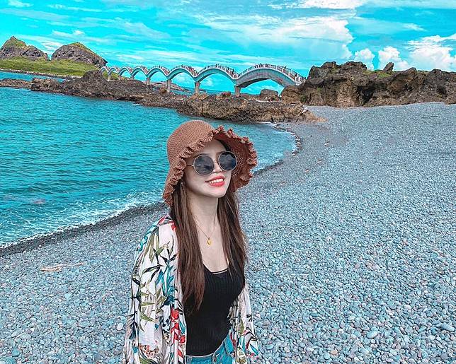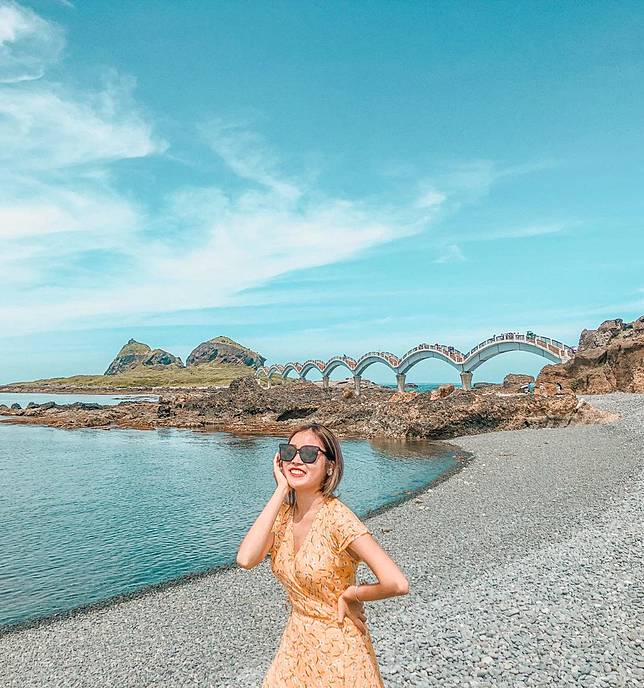 礫灘也是三仙台的海蝕地形之一,圓潤小巧的一顆顆小石頭,平鋪在八拱橋的一側,坐在礫灘上吹著海風,欣賞海天一色的風景,真是無比舒服暢快。