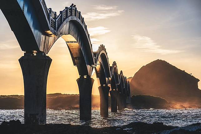 跨海步橋總共有8個拱形,又稱為八拱跨海步橋,全長約400公尺,共325個階梯,造形如此奇特的八拱橋,儼然已成為了三仙台的代表地標了,以往從要到三仙台,只能等到海水退潮,自從跨海步橋建成後,前往三仙台更加方便了。