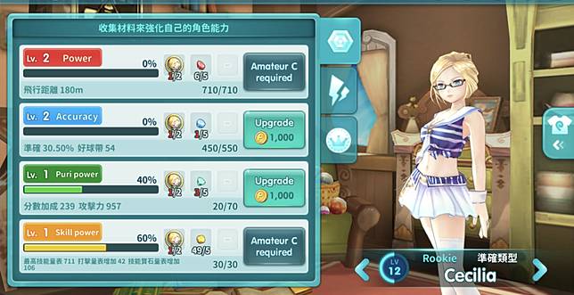 除了給角色換上更好的球桿跟衣服之外,千萬不要忘記給角色強化能力唷,這樣才會讓通關變得更輕鬆簡單。