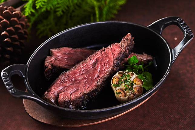 挑高的室內空間給人舒適的用餐環境,而且一眼望上二樓就會看到一支支酒堆疊而上的酒窖空間,很是壯觀。雖說主角當然是牛排,但從開胃菜到湯品與甜點也是十分到位。而每份端上桌的牛排都是使用鑄鐵鍋盛著,不只是視覺上優雅好看,也有些保溫效果,牛排一上桌散發著木碳煙燻過的香氣也很是迷人。至於為什麼說是慶生過節首選呢?其實來到「教父牛排」用餐不只是一場奢華頂級的饗宴,當日壽星也會贈送慶生蛋糕!餐廳內的座位也幾乎都是兩人座,也很適合情侶約會用餐。