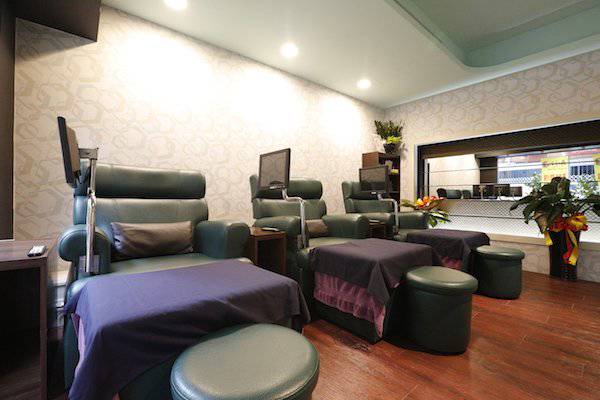 位於饒河街夜市旁,地點便利。店內大膽的利用 Tiffany 藍為基調的設計,加上明亮採光的裝潢,打破傳統按摩產業的裝潢,氛圍相當舒適喔!且每間包廂皆設有獨立淋浴間,隱私隱密度高。