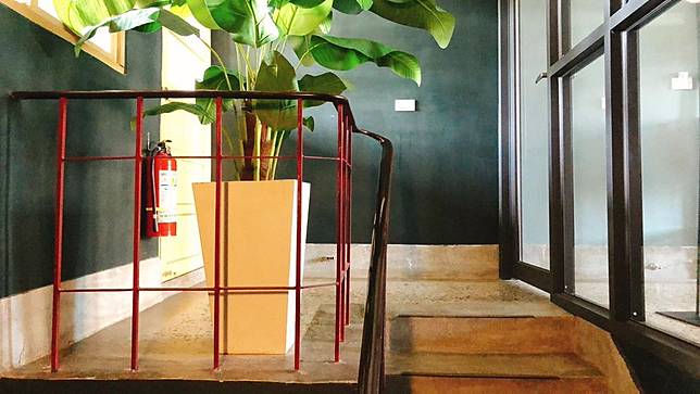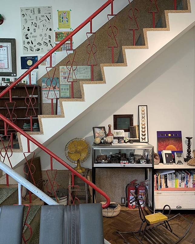 ▲吉姆俱樂部的磨石子樓梯與紅色鐵欄杆(圖片來源:IG @zzzzzzoh)