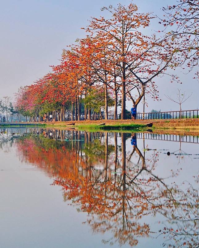 ▲林初埤木棉花道與水塘倒影(圖片來源:IG @bartpinyao)