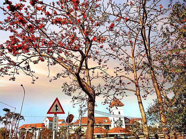 在這裡共有七條木棉花道,堪稱全台最密集的木棉花道啊!