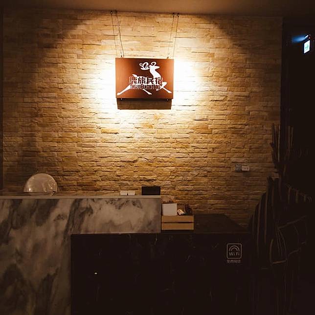 有著工業風的沈穩俐落。黑色鋼架在大面落地玻璃上描繪出整齊的格線,昏黃的燈光搭配木質調傢俱以及植栽。因為是「鹿」旅,所以必備許多充滿「鹿」的形象擺設,具設計感,質感滿分又有點可愛,讓人心情愉悅又舒暢。