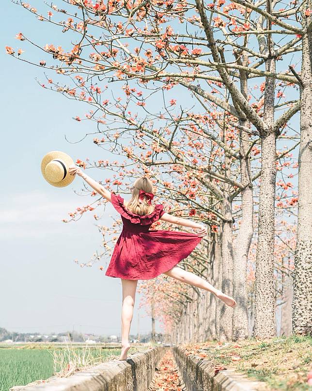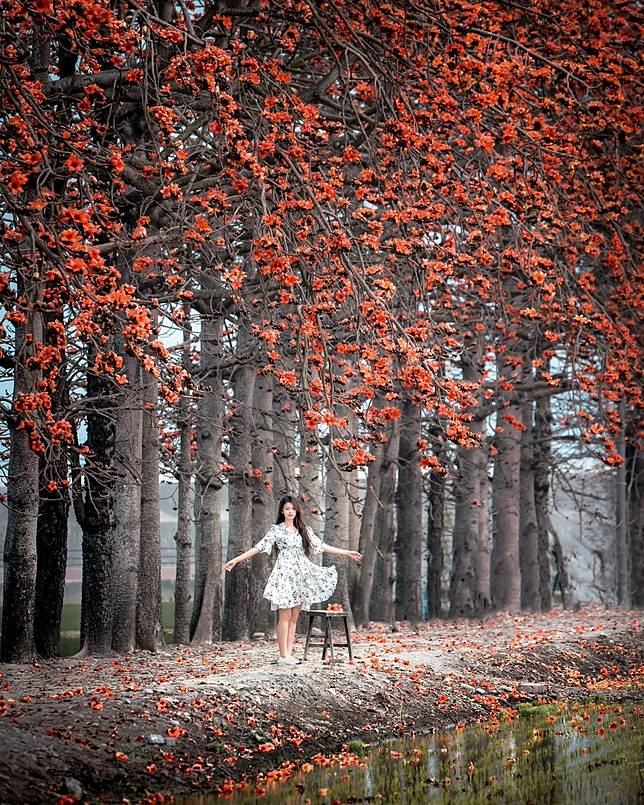 ▲林初埤木棉花道與和服的邂逅(圖片來源:IG @taiwan.4fun)