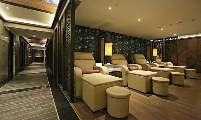 決定好使用按摩方案後,就會由按摩師帶你換上紙拖鞋,大廳右邊是寬敞的腳底按摩與指壓區,而左邊是油壓芳療區。