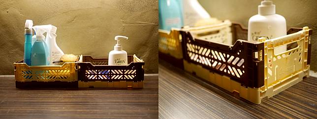 眼尖的你們有沒有發現小編把他們各拆兩片至對方的身上呢!?除了使用原色收納籃外,還可以買不同顏色的收納籃,再組裝成喜歡的樣子唷!套上去後超級像香草巧克力餅乾!趣味度up up!