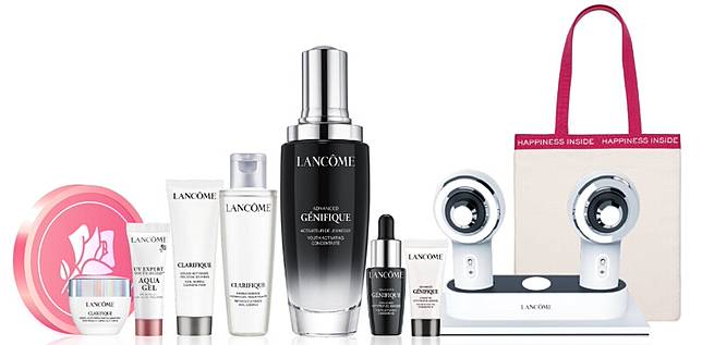 內容:購買超未來肌因賦活露75ml正產品,加贈超未來肌因賦活露7ml、超極光活粹晶露50ml、超未來肌因賦活露5ml、超極光亮白彈嫩保濕霜15ml、 超極光淨緻毛孔洗面乳30ml、超輕盈UV 水凝露SPF50 PA++++ 10ml、幸福托特包、蘭蔻超音波科技護膚、蘭蔻會員點數3000點。週年慶特價NT4,950(價值NT16,900、須持任一振興券結帳)