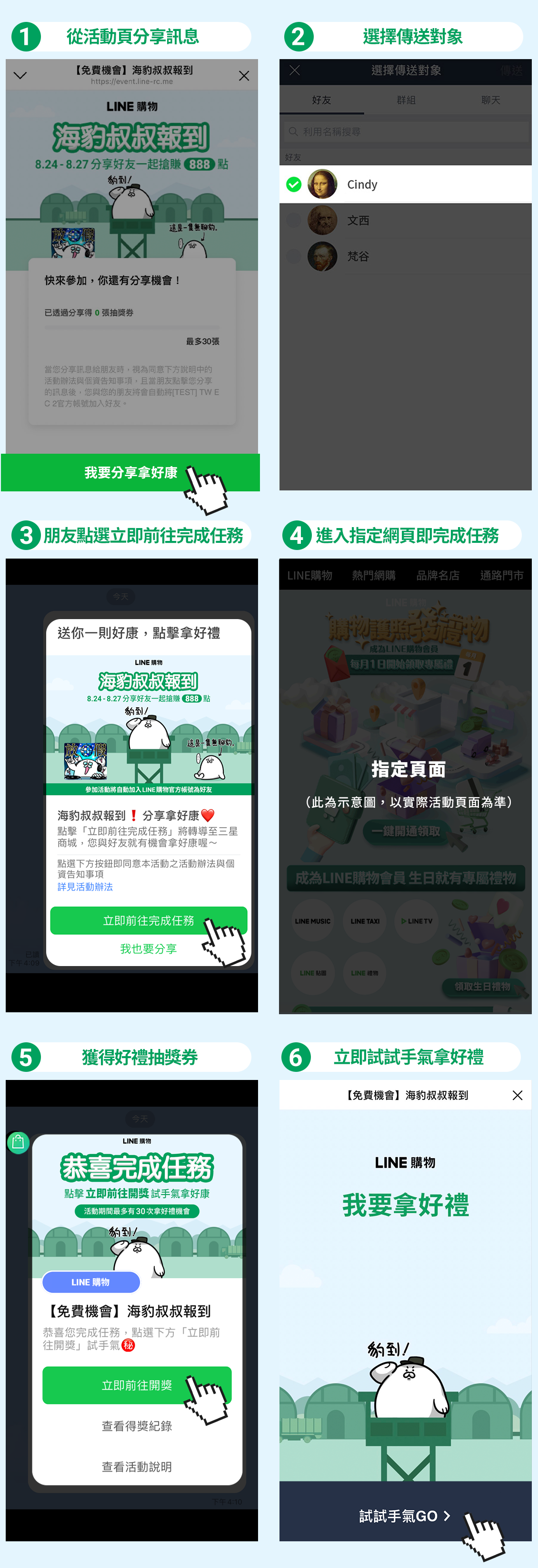 5. 分享給同1名好友,最高可獲得1次好禮,若要再獲得好禮請分享給其他好友。