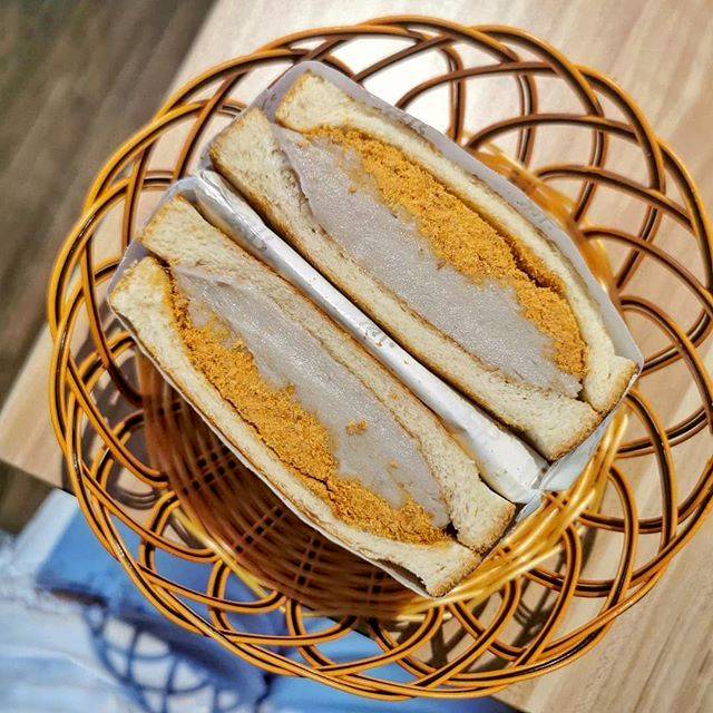 店家招牌是芋泥系列吐司,吐司內夾著幾乎溢出的芋泥,淡紫色與米白色層疊起來的三明治切面,既上相又美味,份量也很足;其中,芋泥肉鬆吐司(65元)甜鹹衝突又互相搭配的滋味,是不能錯過的台灣味美食喔。
