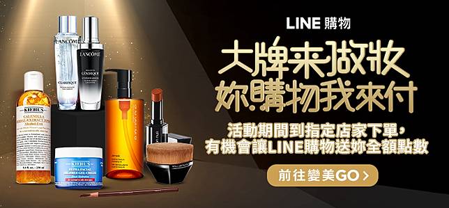 活動期間內,透過「LINE購物」 前往指定品牌官網(Lancome蘭蔻官網、Kiehl's契爾氏官網、植村秀官網、YSL Beauty Taiwan 官方網站、Giorgio Armani Beauty、GUERLAIN法國嬌蘭、MAKE UP FOR EVER、白蘭氏健康Mall、myBRA、dyson戴森線上商城)完成消費,即可參加「大牌來做妝!從內到外都要美美搭-你購物我來付」(下稱「本活動」),享有一次抽獎機會。於活動結束後,每指定品牌會抽出一筆訂單,贈送該筆訂單總金額之LINE POINTS。