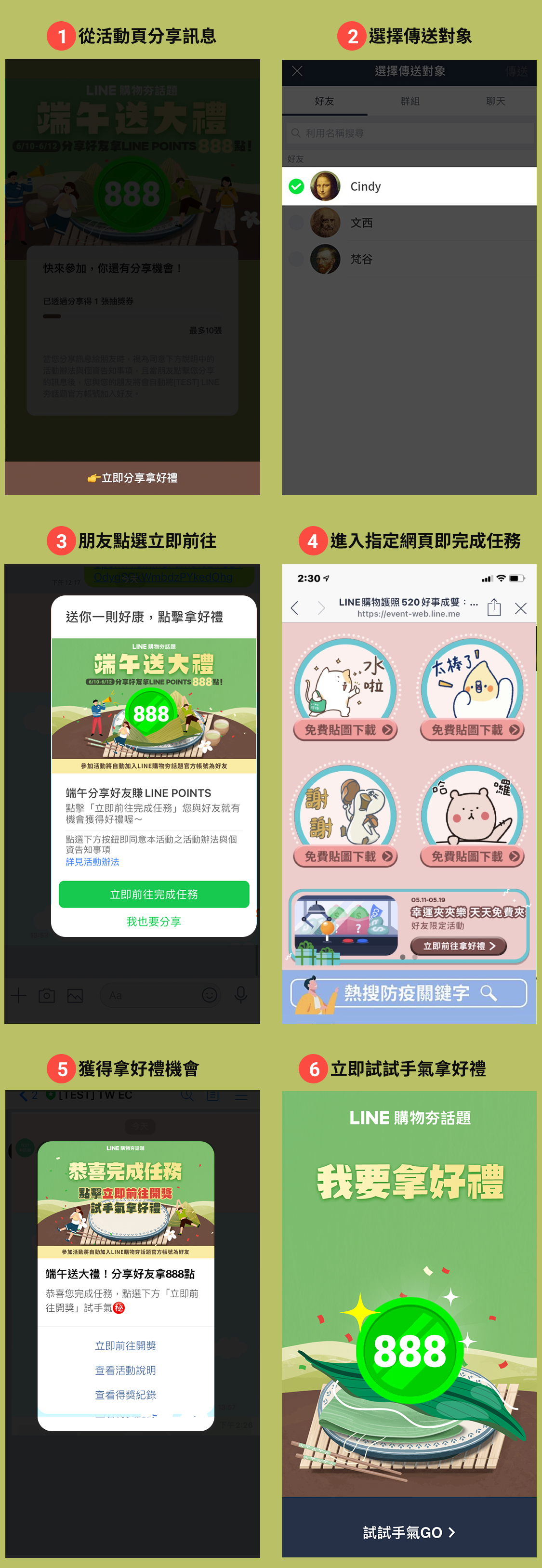 5. 分享給同1名好友,最高可獲得1次好禮,若要再獲得好禮請分享給其他好友。