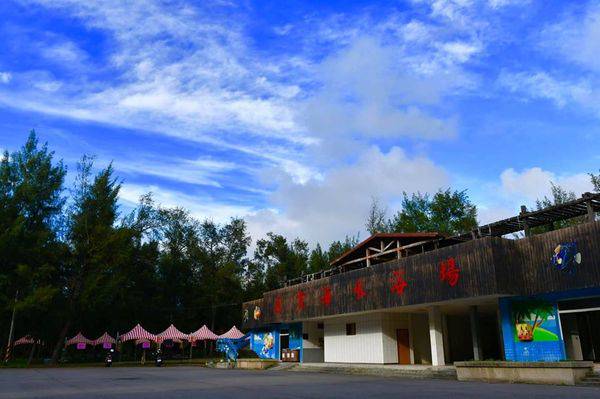穿越防沙林高大的木麻黃樹群後方就是海水域場的沙灘跟海水區了,給人一種柳暗花明又一村的感覺,完整的設施設備非常適合情侶、一家大小來同樂。