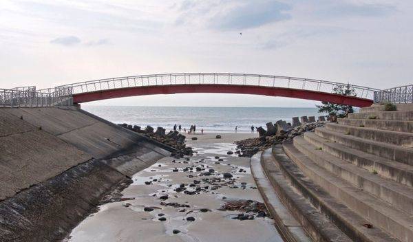 在秋茂園海岸景觀區旁的跨海大橋,是來通霄的必拍景點,從新埔沿著石蓮園海堤一直走就能一次把這些知名通霄景點收入口袋。