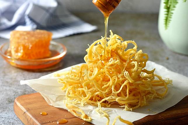 以不斷演進改良的乳酪工藝技術,用16公升牛奶做出1公斤的乳酪絲,而且堅持以手感剝絲,把紮實的辮子乳酪剝成一絲絲後,再經過老師傅經驗的火侯拿捏,精心烘烤讓乳酪絲外層金黃酥脆,保持乳酪絲內層的濕度,並達到外層酥脆,內層濕潤的豐富多層次口感,大人小孩都喜歡。