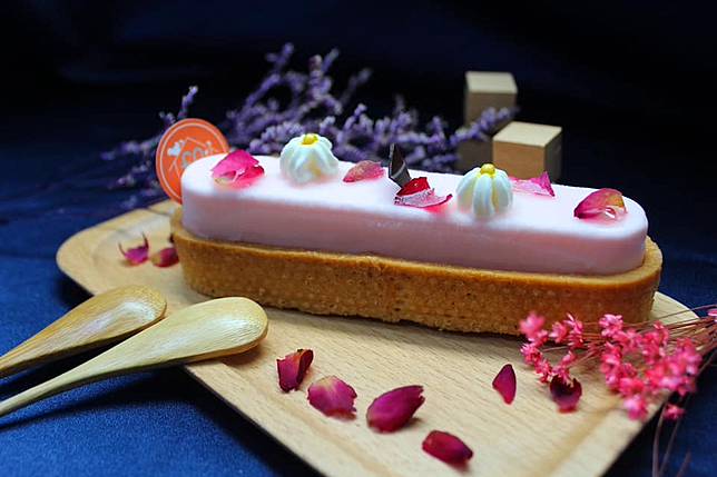 荔枝慕斯夾層著玫瑰花瓣醬,浪漫誘人的外表下隱藏著玫瑰與荔枝的完美結合。