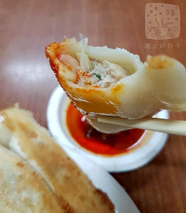 而其麵皮比普通水餃皮略厚,餡子口味是大白菜豬肉,清甜清甜地,相信是不喜韭菜、韭黃辛濁氣味者的福音。