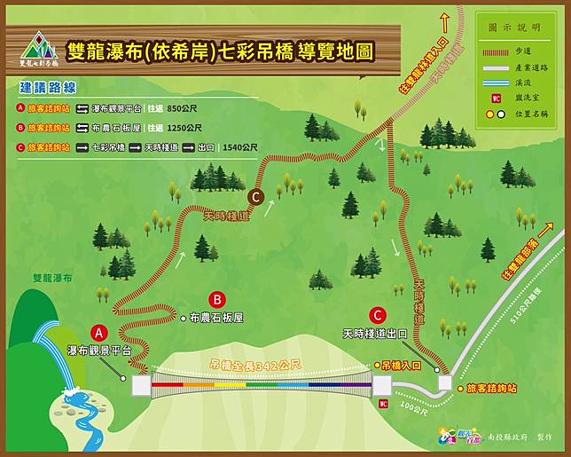 ▲雙龍瀑布和吊橋周邊導覽地圖。(圖/南投縣政府網站)