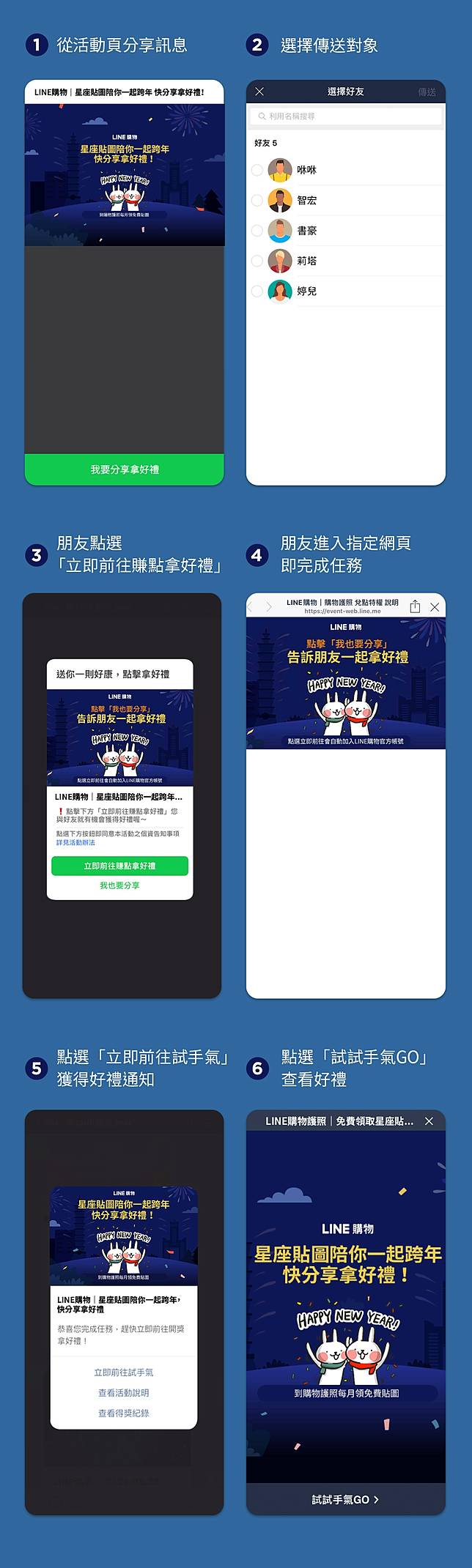 3. 分享者須從活動頁分享訊息並選擇好友傳送,若將他人分享的網址轉發給好友,將無法獲得好禮。