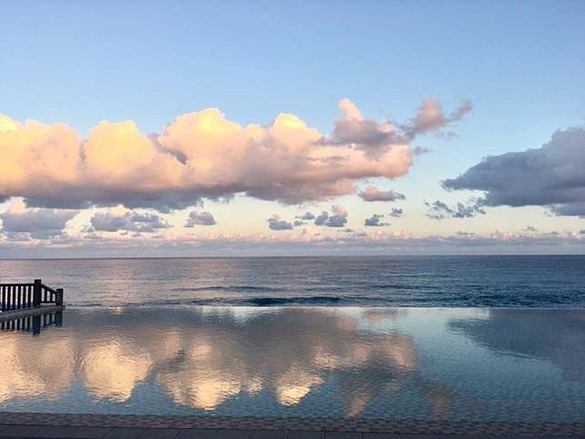 閉上眼睛,恣意在無邊際泳池中漂浮著,遠處的山、海與池畔僅一步之遙,彷彿隨時可拋下所有煩悶,又或者坐在池畔邊,飽覽美景、或許來杯沁涼,忘卻炎熱的酷暑,幸福,可以這麼簡單。